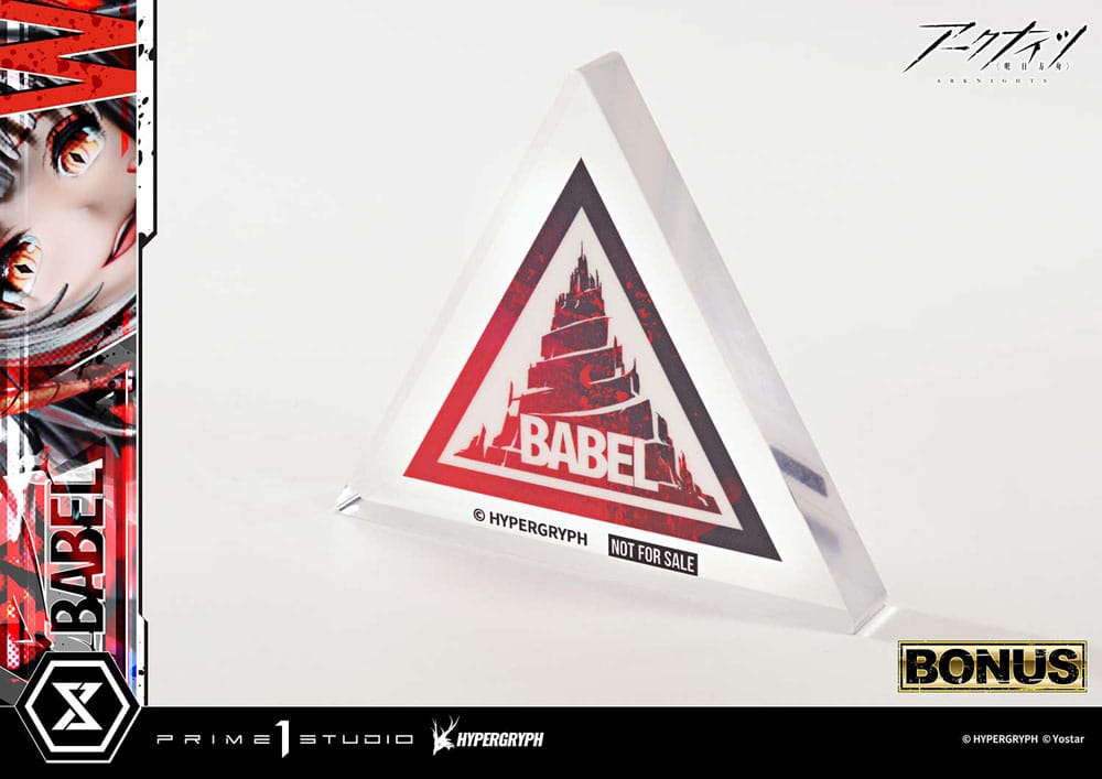 A Sarkaz grenadier who laughs amid the blast. Her striking visuals and vivid illustration are brought to life in a stunning 1/6 scale statue! In a world reshaped by the mysterious mineral known as Originium, the incurable disease Oripathy spreads across the land. From the acclaimed tower defense game "Arknights," which tells the story of those afflicted and the conflicts surrounding them, W ELITE 2 joins the Concept Masterline series. Amid the wreckage of a battlefield torn apart by explosions, the Sarkaz grenadier W wears her trademark mischievous smile. This 1/6 scale statue captures her Elite 2 appearance-an embodiment of her very essence. The piece features a striking circular composition and a sense of weightless motion, realized through a dynamic, three-dimensional layout unique to a physical statue. Every element emphasizes her commanding presence as the master of destruction. Her eyes gleam with reflected sparks, her lips curve into a playful grin, and her fingers seem poised to trigger the next explosion. Every sculpted and painted detail faithfully conveys the essence of the original illustration. The fluttering frills of her skirt and the texture of her leather jacket are rendered with exquisite realism, even capturing the glow of the surrounding flames. From the firearms she carries and the mascot dangling from them to the detonator in her hand, each element is intricately crafted to perfection. The explosive backdrop has been artfully arranged to deliver maximum impact while remaining ideal for display. Layers of textured and gradated smoke recreate the swelling air and lingering shock of the blast, while the stylized steel beams add a bold visual rhythm. Grenades and bombs reminiscent of her tactical arsenal complete the composition, forming a vivid image of destruction frozen in motion. This Bonus Version also includes the BABEL Logo Plate, a special accessory symbolizing the bygone days that shaped her very identity. W ELITE 2-brought to life through masterful sculpting and paintwork. A collection piece sure to stun all who behold it. Product Specifications: - Arknights-themed Base - BABEL Logo Plate [BONUS PART]