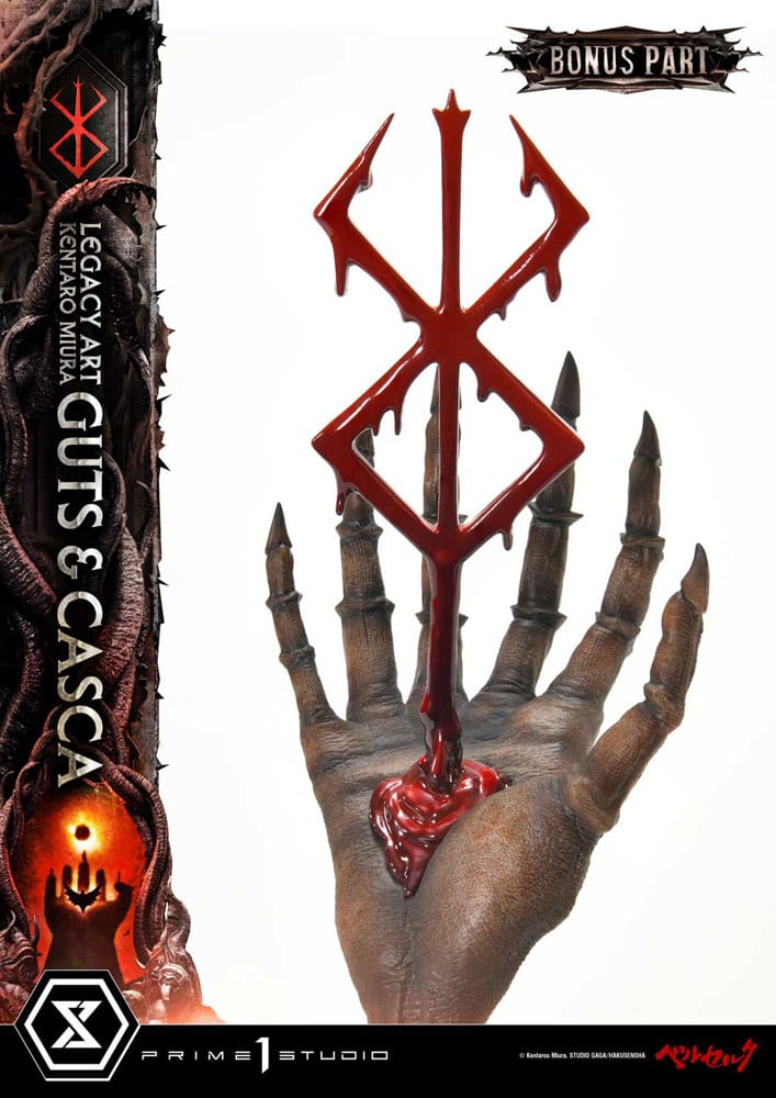 The specially crafted base that captures the horrific Eclipse serves as another main character in this piece. Surrounding the pair are countless apostles, the God Hand stretching towards the sky, and the dark wings emerging from the palm. The Eclipse and the Brand of Sacrifice illuminated by LED, further amplify the eerie atmosphere.