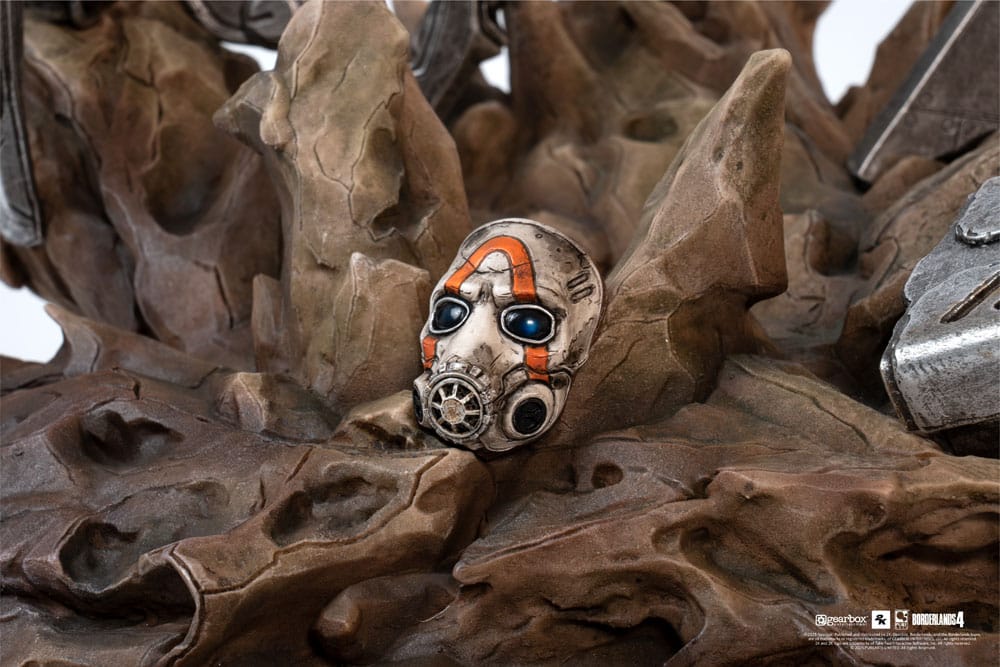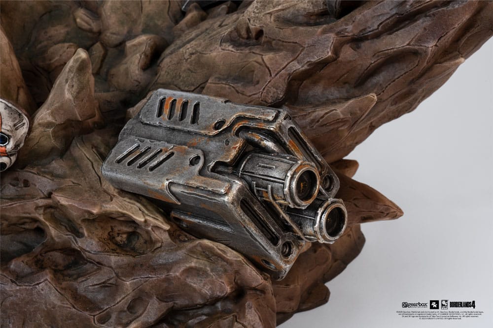 Are you ready to take on Callis, the Ripper Queen? The fearsome ruler of the Rippers from Borderlands 4 towers above a shattered battlefield base covered in the wreckage and chaos of Kairos, including the eerie remains of a Psycho Bandit's mask. From her massive mechanical arms to her exposed cybernetic frame, every detail of flesh and steel capture her terror and power. PRODUCT HIGHLIGHTS - Hyperdetailed statue of Callis the Ripper Queen from Borderlands 4 - Shattered rocky base with Psycho Bandit mask - Large 1/6 scale format, over 19 inches tall! - Limited edition, individually numbered Limited to 750 pieces.
