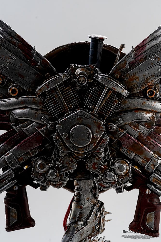 Bring the world of Pandora home with the Borderlands Psycho Bandit Art Mask! With glowing LED-lit eyes, a free-spinning rusted Buzz Axe base, and a chaotic explosion of guns, ammo, and motor engines, this 1:1 scale art mask is a shrine to mayhem.