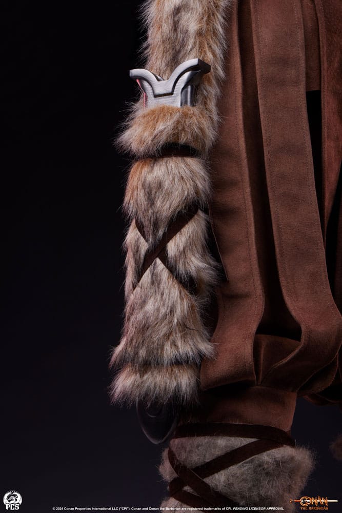 Standing at a staggering 46" tall, this is the definitive Conan the Barbarian statue. Featuring an uncannily accurate portrait of Arnold Schwarzenegger in his iconic role, this collectible brings the Cimmerian warrior to life as never before. The Conan 1:2 Statue features a costume masterfully crafted in real fabric including pants, gauntlets, boots with faux fur trim and a faux fur covered sheath at his hip.