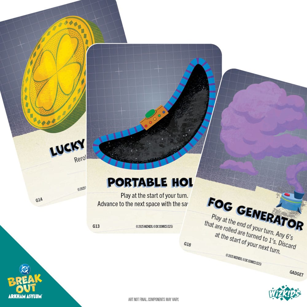 DC Breakout: Arkham Asylum™ is a thrilling race to freedom designed by Geoff Englestein and his children, Brian and Sydney. With a variety of iconic Villains from your favorite Batman series, there are hundreds of possible duos to play! Use your villainous powers and gadgets to gain the upper hand over your rivals. Find out what happens when you pair up your favorite diabolical duo as you race to victory!