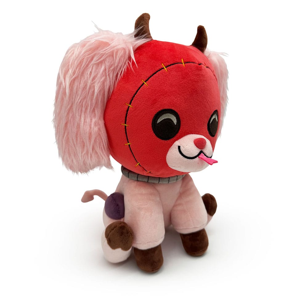 What are all these dead bodies doing here? Wait... Is that one moving?! Kikurage, is this your doing?! Sitting at 9 inches tall with round black eyes and a short forked tongue sticking out from a smiling muzzle, their head is covered in a stitched red mask with a pair of fluffy ears fanning out from either side as short horns poke out front the top. Wearing a grey collar around their neck and with hooved paws propping them up, their light pink body has dark marks on the haunches as a thin pointed tail sticks out from their back. This plush is packed to the seams with 100% PP cotton and is made of a mixture of minky and fur materials, absolutely perfect for cuddling and playing with bugs!