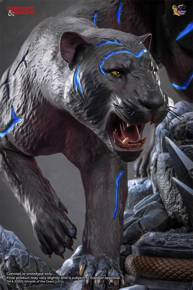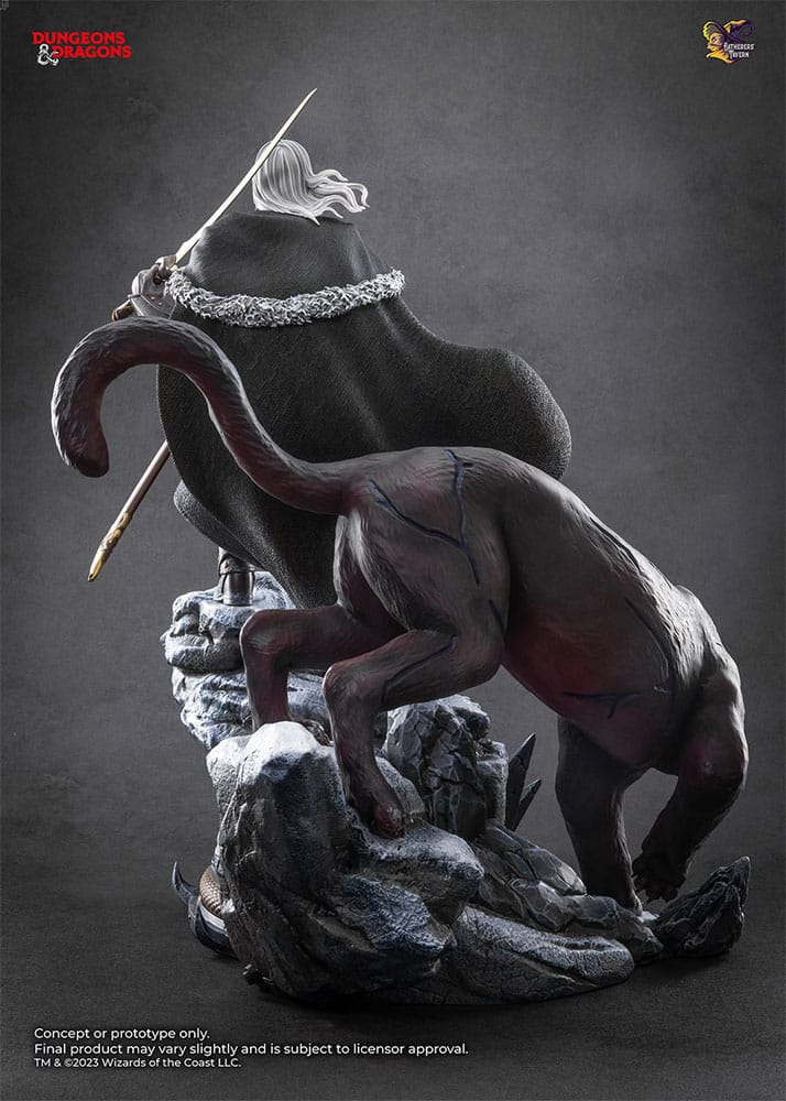 A PREVIEWS Exclusive! Gatherers' Tavern is excited to present a Dungeons & Dragons (D&D) premium collectible statue, Drizzt Do'Urden! To celebrate the 35th Anniversary of this legendary hero, this statue pays tribute to one of the most beloved characters from the legendary R.A. Salvatore's Forgotten Realms series. This exquisite piece also captures his faithful companion, Guenhwyvar, at his side as a testament to her unwavering loyalty and formidable strength. The Drizzt Do'Urden statue boasts two interchangeable heads, LED-light features on Guenhwyvar, and two pairs of arm switch-outs, all crafted in cold cast porcelain. It includes a snow mountain themed base, is individually hand-painted, and comes with a 925 sterling silver necklace of Mielikki and a 3" Figurine of Wondrous Power. Limited to 399 pieces, each purchase also includes a free official 925 sterling silver pendant of Mielikki.