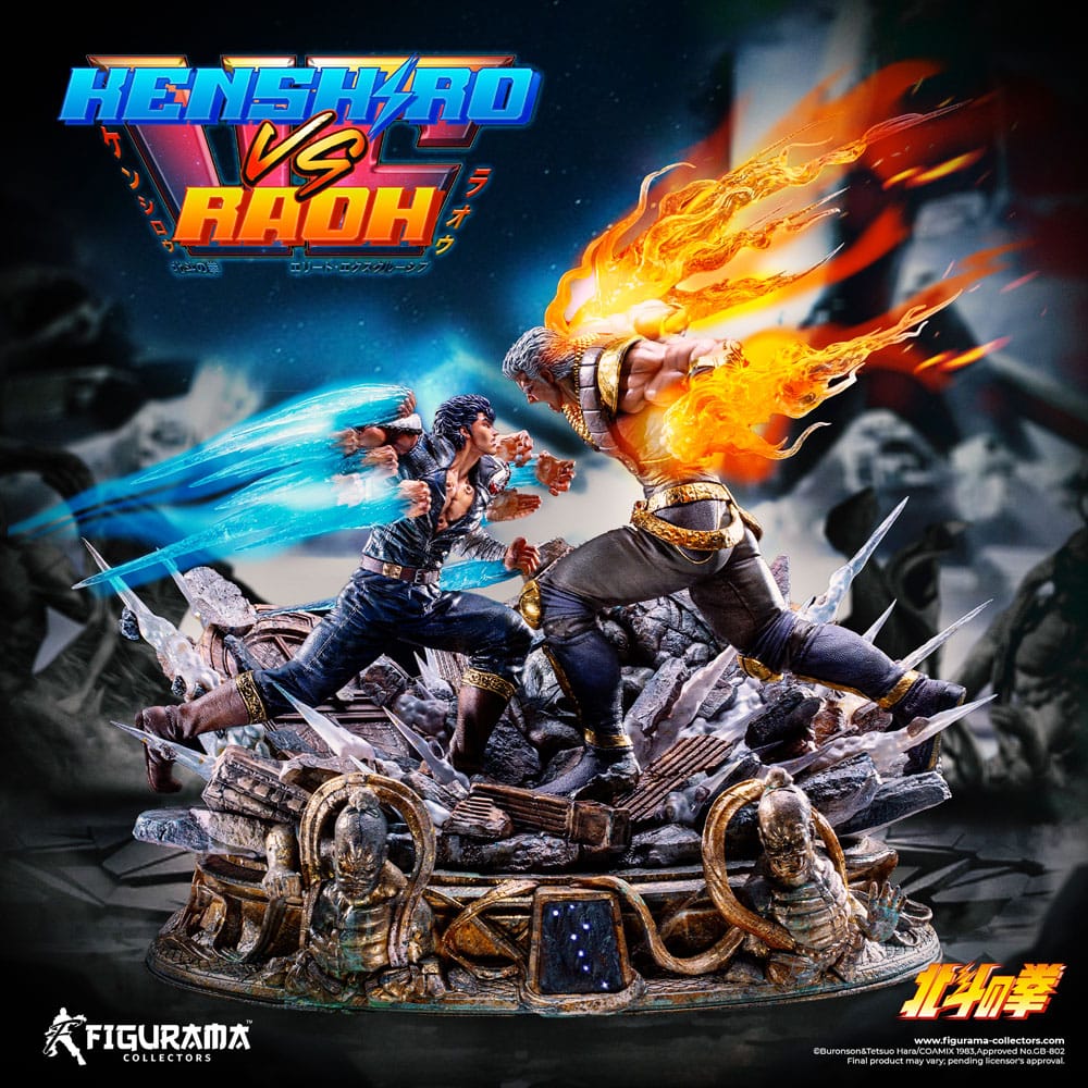 Figurama Collectors have captured the power and unique fighting styles of each Kenshiro and Raoh from Fist Of The North Star in this Elite Exclusive statue. The statue depicts Kenshiro and Raoh's final fight in the Hokuto Shin Ken Dojo encapsulated by the Nio Guardians and rubble, with many easter eggs around every corner of the statue.