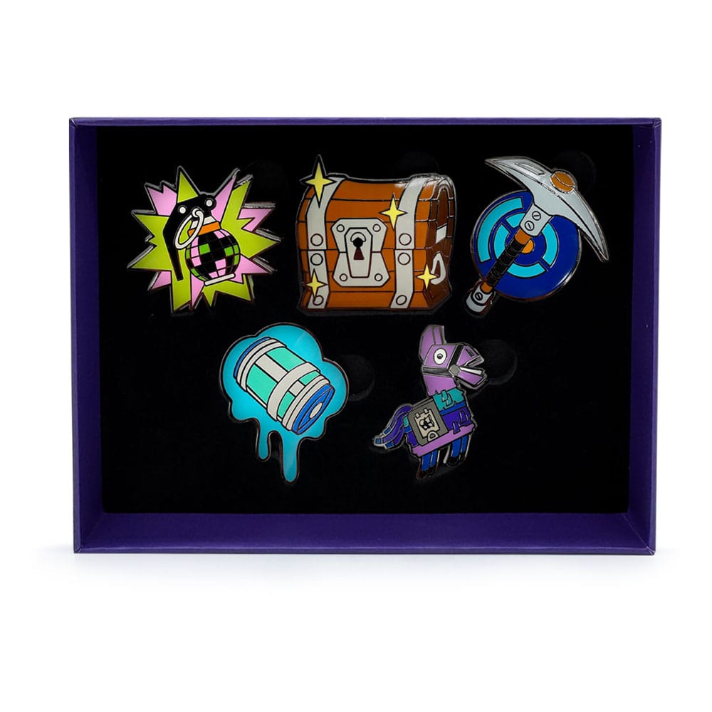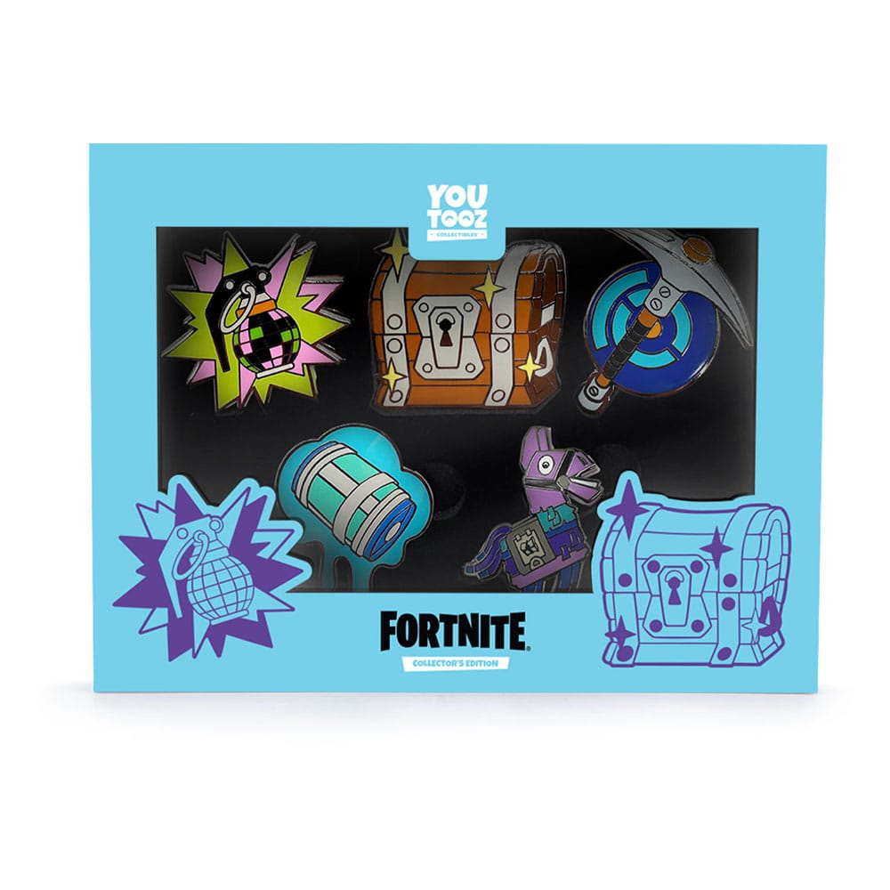 It doesn't matter if you're in a team or going solo, this pin set is the best accessory to take into a battle royale hands down! With 5 unique enamel pins that each measure in at 2 inches tall with a shiny, high-quality finish, the collection contains an exploding Boogie Bomb, a sparkling chest, a dripping Chug Jug, a pickaxe and a Supply Llama. Perfect as decoration on a cork board or showing off on your tote bag, backpack, fanny pack, jacket or wherever your heart desires, these pins are sure to turn heads and catch the eyes of anyone you pass, letting them know who's gonna come in first!