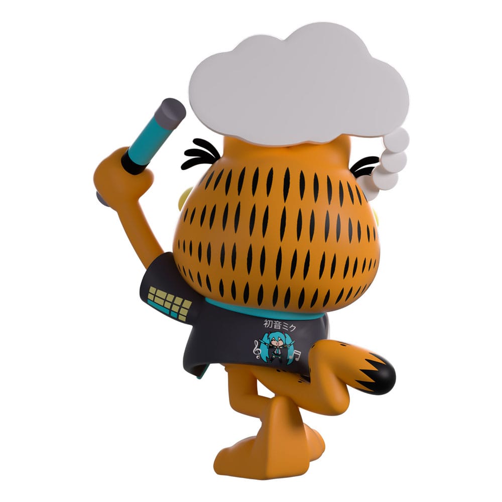 Garfield follows Miku back to Youtooz like the ultra fan he truly is! Standing at 5.1 inches tall and waving a blue pair of light sticks in his hands as a thought bubble showing his love of Miku pops out from his head, his huge white eyes look upwards from a smiling orange face as small hairs poke out from either side of his ears. Wearing his best Miku merch with a dark grey and blue coat, along with a tie around his neck, hanging from his left shoulder is a VIP Miku lanyard. The exterior of his packaging features Garfield on stage with pink and blue spotlights behind him. The interior is covered in panels of a comic, these then make their way onto the dark protective sleeve as orange music notes dance across its front, and his figure can be seen through the large clear window. This collectible ships in a matte, embossed, protective outer sleeve and a custom-sized plastic protector for maximum protection during shipping.