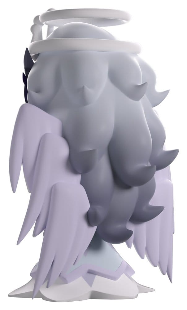 Sera has seen that sinners really can be saved and has come to Youtooz to witness our redemption! Wait... we're not sinners... are we? Standing at 5 inches tall with her hands crossed at the front as a pair of large grey and blue eyes look out from above, freckled cheeks, a pair of halos rest atop the long grey-white hair that falls down past her waist, as elegant pink and white wings fan out from her shoulders. Wearing an angelic dress that has a high collar and sleeves that come over her hands, its rounded white shoulders match her forearms as a diamond pattern runs down its two tiered silhouette. The exterior of her packaging looks down on an intricate golden dial, while the interior is filled with swirling clouds against an orange and purple sky. The protective sleeve is then designed to show off a dark cityscape as her figure can be seen through the large clear window at the packaging's front. This collectible ships in a matte, embossed, protective outer sleeve and a custom-sized plastic protector for maximum protection during shipping.