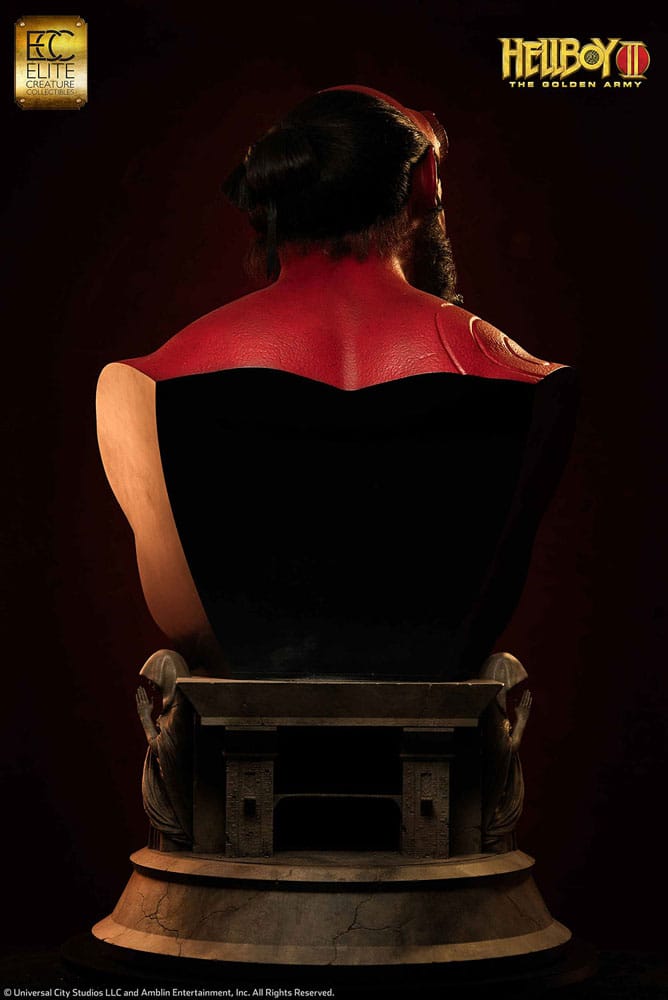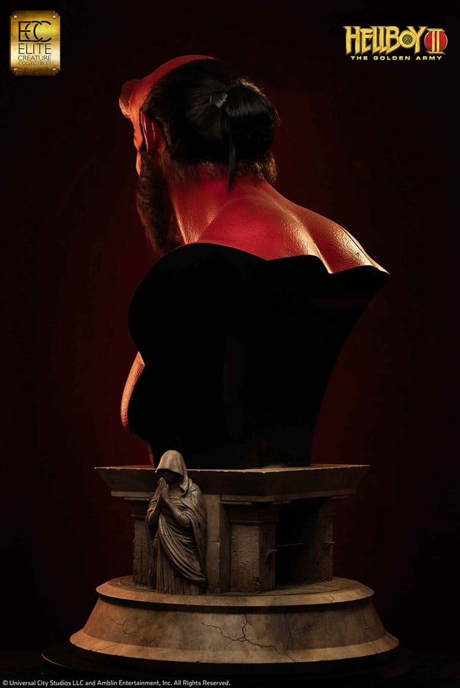 Hellboy II: The Golden Army was released in the United States on July 11, 2008, to generally positive reviews from critics; with praise towards its fantasy atmosphere, as well as Perlman and the other cast's acting performances. The film received a nomination for Best Makeup at the 81st Academy Awards. Actor Ron Perlman portrayed Hellboy, an immensely powerful demon who works for the government organization Bureau for Paranormal Research and Defense (B.P.R.D.). Guillermo del Toro described the character's dilemma in the sequel, "Hellboy has always fought on the side of humans, but the fantasy of destruction pushes his buttons to reconsider." Elite Creature Collectibles has crafted a life-size bust of the Hellboy. The bust captured the style, attitude, and spirit of Hellboy, true to Ron Perlman's vision of the perfect "Hellboy". Product: Hellboy Life-Size Bust - Size: - Approximately 39.5 inches in height. - Approximately 19.7inches in width. - Approximately 19.7 inches in depth. - Cast in high-quality resin with hand painted details. - Museum style glass eyes. - Attractive themed display base. - Real hair. - Sculpted by Adam Beane. - Certificate of Authenticity signed by Guillermo del Toro and Adam Beane. - Approximate dimensions: 100 x 50 x 50 cm Each statue is individually numbered, with a limited worldwide production run of 150.