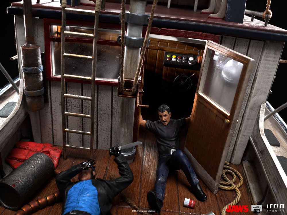 Off the coast of Amity Island, the famous shark fishing vessel called the Orca, named after the shark\\'s only natural enemy faces its wreckage after a long hunt for the deadliest marine predator it has ever faced. Crewed by its captain, eccentric war veteran Sam Quint, alongside Amity Police Chief Martin Brody, the vessel\\'s stern shatters into pieces in the teeth of the sea\\'s most fearsome creature, the Great White Shark. With the bow of the boat suspended from the water by the weight and strength of the animal, Quint fights the creature, slipping into the voracious mouth of the monstrous fish, while Brody, in despair, holds on to the doorframes of the Orca\\'s cabin, so he doesn\\'t have the same terrible fate. Replicating the final scene of combat between the brave hunters and cinema\\'s most famous carnivore, Iron Studios proudly presents its \\"Jaws Attack Demi Art Scale 1/20\\" statue, inspired by the classic and iconic film directed by Steven Spielberg.