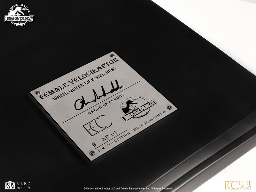 Continuing to expand its collection for fans and collectors, Elite Creature Collectibles is proud to present the life-size Female Raptor "White Queen" bust from Jurassic Park III, in collaboration with ECC key artist Oskar Ankarudd, who faithfully recreated the model at full scale. The paint master was also hand-painted by Oskar Ankarudd himself.
