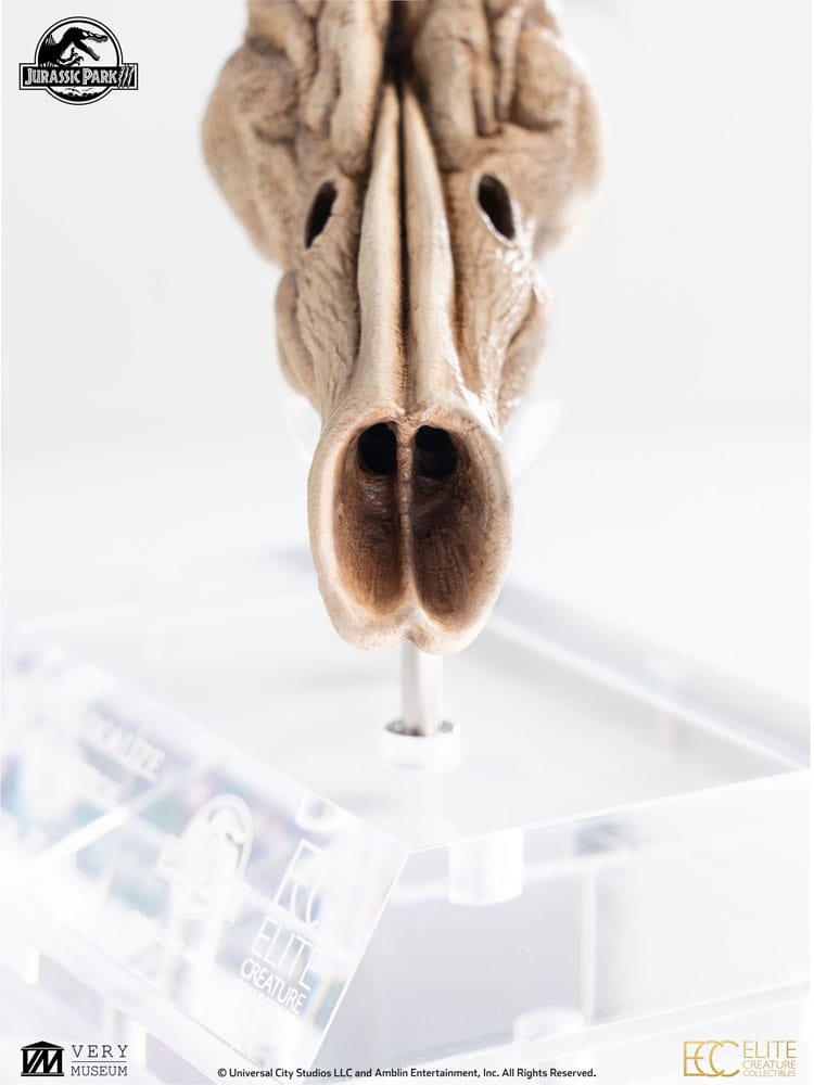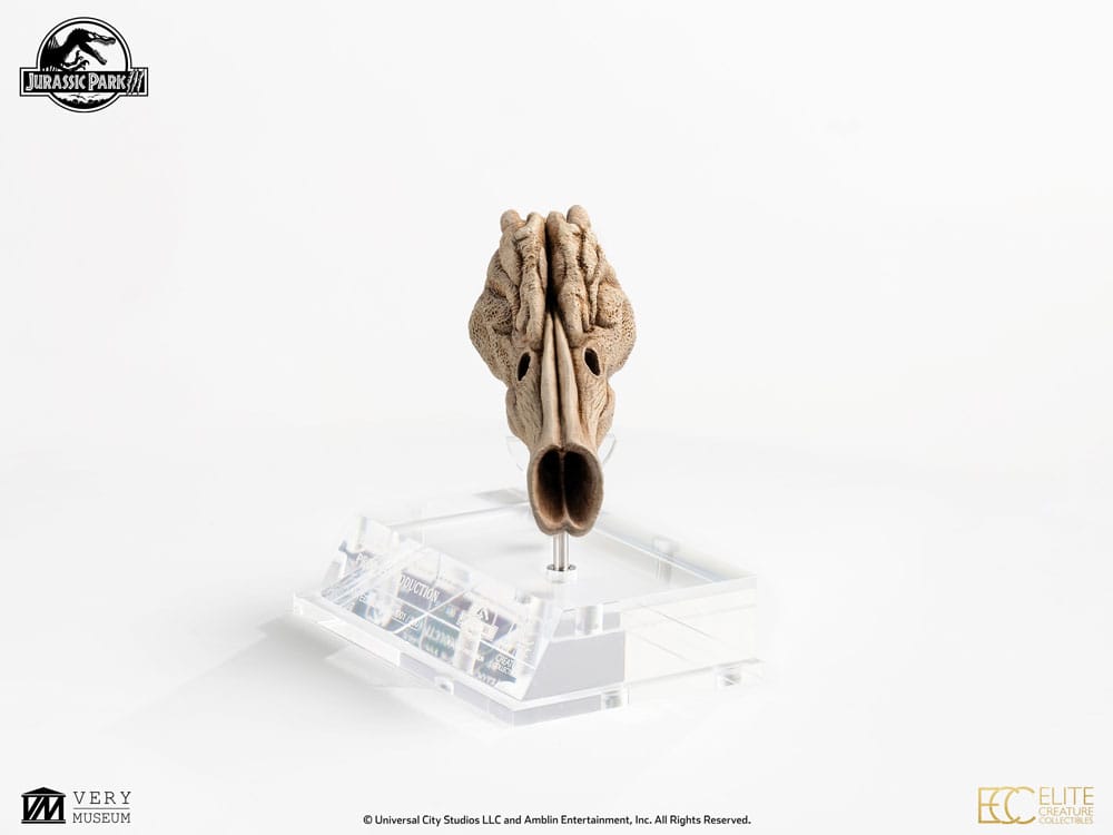 Elite Creature Collectibles is proud to present this Velociraptor Resonating Chamber reproduction as part of its new movie prop collection for the Jurassic Park franchise. Created with direct access to the original screen-used prop and refined by artists Mavis and Oskar Ankarudd, the piece is presented on an auction-style acrylic display base and is fully removable from the stand.