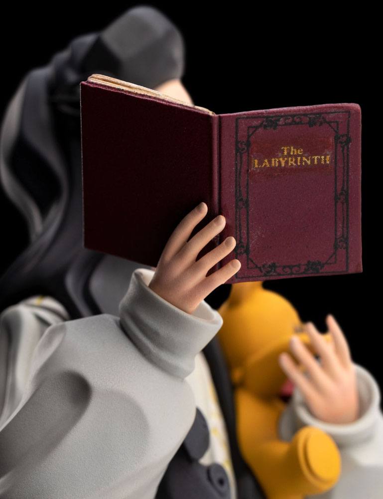 - Sarah is presented in Mini Epic form, holding her Labyrinth playbook and her bear Lancelot, as