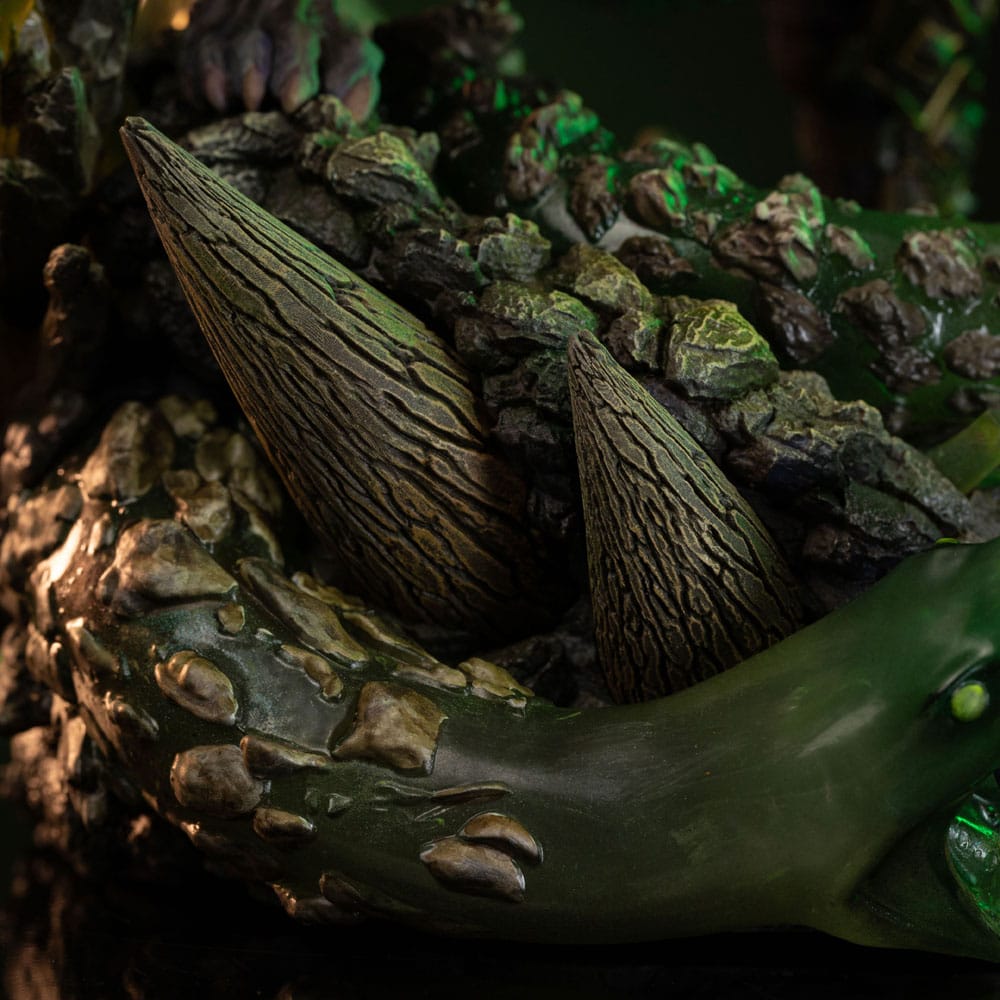 On a stone staircase carved into the rocks of a dark fortress, created to be the home of a sinister sorcerer, leader of a clan of nefarious beings dedicated to serving him in the goal of conquering and dominating his world and expanding his empire, the feared and monstrous villain uses the dark magic of his staff to create horrific energy serpents while holding a bone dagger with his right hand, part of the chest ornament of his armor. Filled with meticulous details and created with extreme attention and precise care to achieve the highest prominence in the collections, Iron Studios proudly presents the "Skeletor Unleashed - MOTU - Deluxe Art Scale 1/10" statue, featuring He-Man's greatest archenemy as the first character from Masters of the Universe in the Unleashed series, a line of statues with an upgraded standard of excellence in the 1/10 scale, set on an extremely detailed base with dark elements reminiscent of a diorama scene from the interior of his domain in the Snake Mountain.