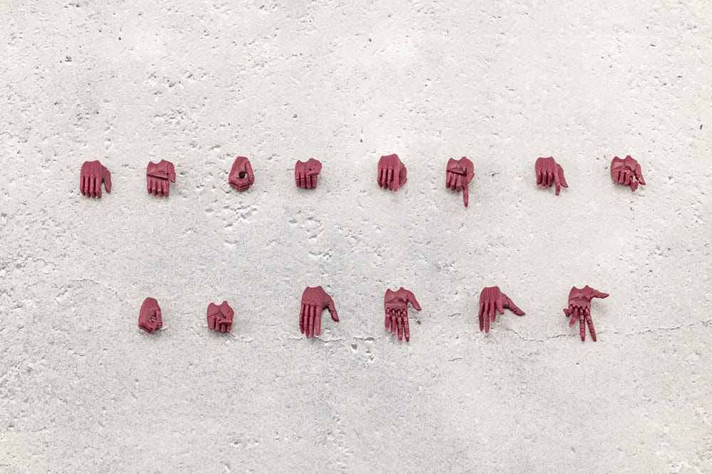 The kit includes seven types of hands. These include hands designed for holding swords, holding guns as well as clenched fists and multiple open hands.