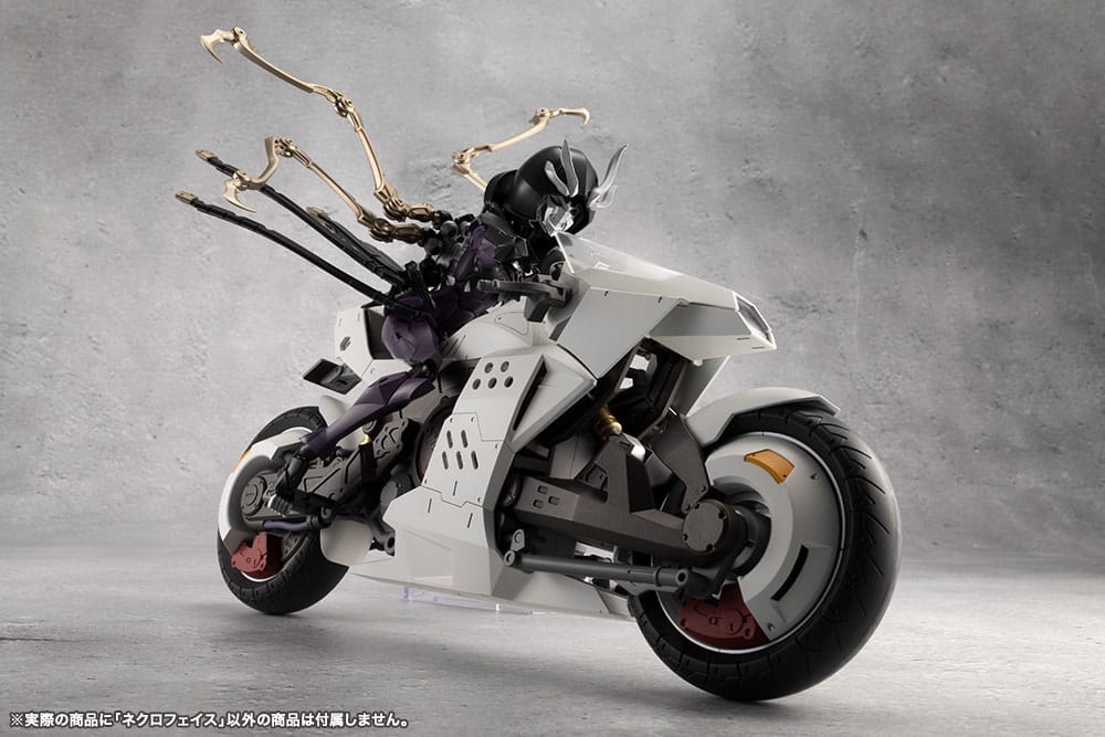 The base mask behind the skull mask has three eyes, with the third eye sculpted into the forehead. The eyes are movable, and the included tool or the end tip of the Curse Reaper (scythe) can be used to adjust the line of sight. The mask can be swapped out for face parts of other female-type Megalomaria and Sousai Shojo Teien characters.
