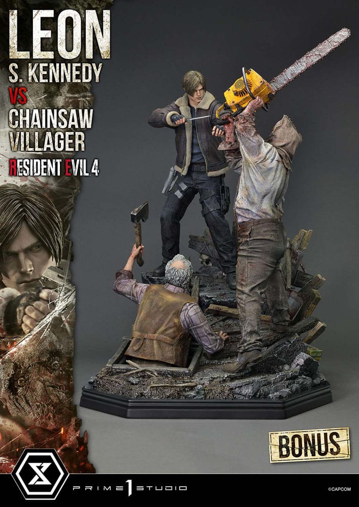Resident Evil 4 Ultimate Premium Masterline Series Statue 1/4 Leon S. Kennedy vs. Chainsaw Villager Bonus Ver. 76 cm