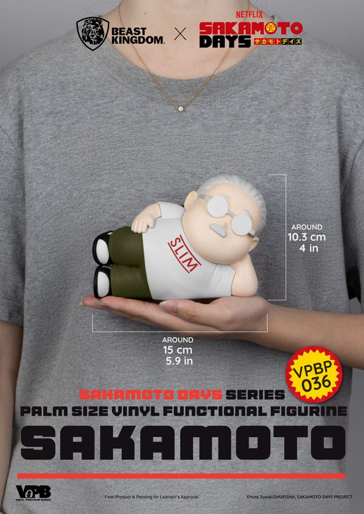 From the smash-hit Japanese manga Sakamoto Days comes the legendary assassin "Taro Sakamoto," now reimagined as a cute, palm-sized vinyl piggy bank! Meticulously crafted by Beast Kingdom's "Vinyl Piggy Bank" series, the figure features a chubby, rounded body and a laid-back reclining pose that's instantly lovable.