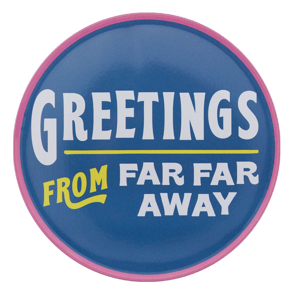 "The Kingdom of Far Far Away is closer than you might think! Bring a smile to even the grumpiest ogre with this set of metal coasters featuring 4 Shrek-tacular designs: The Highest Castle, Beware Ogre, Ye Olde Muffin Shop, and Greetings from Far Far Away.