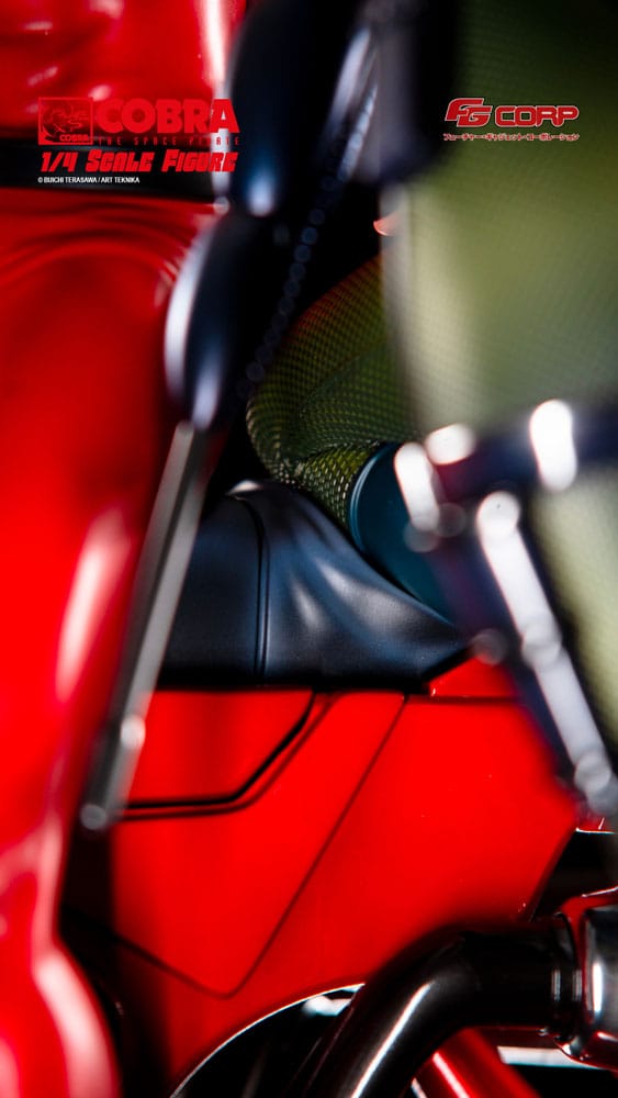 Immerse yourself in the legendary world of COBRA, one of the most daring and charismatic heroes of Japanese animation, straight out of the imagination of Master Buichi TERASAWA, with this exceptional 1/4 scale figure. Capturing the adventurous spirit of our hero and the explosive energy of the original work, this true work of art in resin depicts COBRA on his famous motorbike, accompanied by the splendid JANE ROYAL, in a spectacular "Spacesuit" version that will leave you speechless. COBRA on his motorbike: a faithful reproduction of one of the most memorable elements of the series. His posture, confident and dynamic, tinged with his legendary arrogance, brings out all the power and charisma of the famous pirate. Obviously, the French touch will not have escaped anyone: our cosmic James Bond is a vibrant tribute to Jean-Paul Belmondo. We have redoubled efforts to capture the essence of the character intended by the master TERASAWA. The details of the motorbike, with its futuristic lines and impeccable finish, add a breathtaking touch of realism. Cigar in hand, defiant smile, exposed psychogun... COBRA is the king of cool! Limited to 150 pieces!