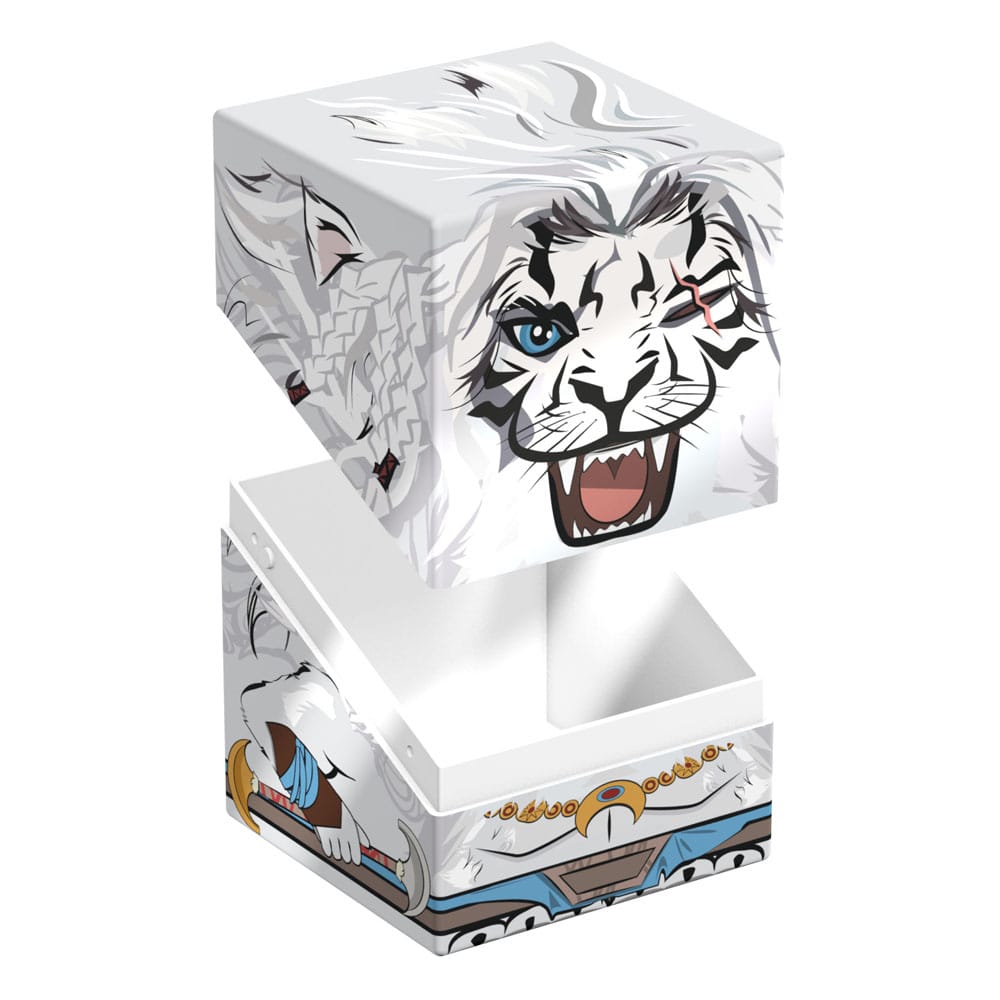 Collectible box for storing your deck, tabletop gaming accessories, and/or collectibles. The Ajani Squaroe from the Magic: The Gathering edition holds up to 100 cards in double protective sleeves if used as a deck box. Squaroes are made from 78% renewable resources.