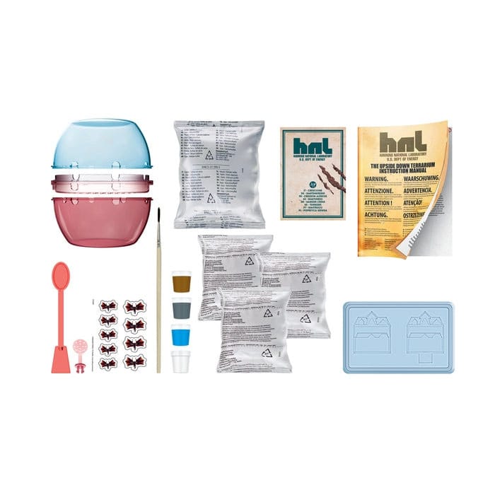 The set includes all the accessories you need to recreate the spooky scene - a container, seeds, clay, plaster, moulds and tempera paints.