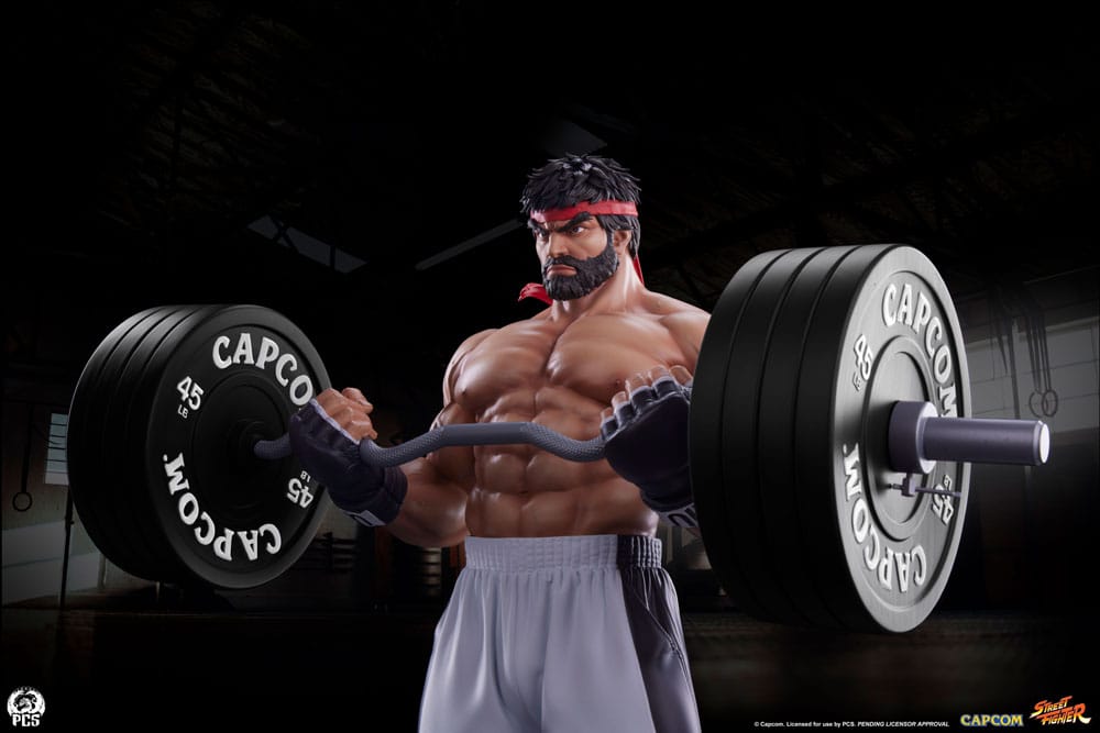 The next piece in our fitness themed Street Fighter line stands over 21" tall and 23" wide, displaying Ryu's perfect form and unbreakable concentration as he curls an incredible weight with ease.