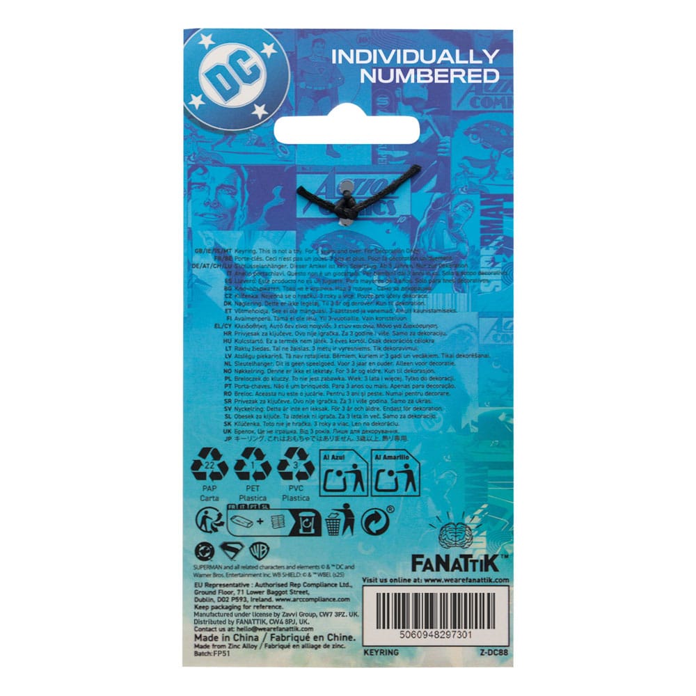 "Featuring the likeness of David Corenswet, this limited edition keyring in the shape of Superman's shield is individually numbered on the reverse as one of 9,995 worldwide.