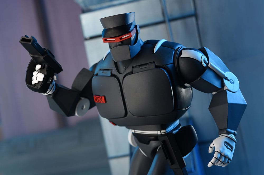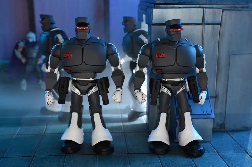 Based on the classic 1980s Teenage Mutant Ninja Turtles cartoon series! The first robot policeman known as "Robot Enforcement Experiment" now has a diabolical duplicate. Shredder's army of Evil Rex-1 robots is here to take control of your toy shelf and terminate the Turtles once and for all! This 7-inch scale action figure is hardwired for havoc. Comes in collector-friendly VHS tribute style packaging.