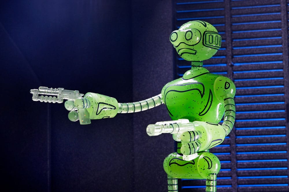As seen in Eastman & Laird's original Teenage Mutant Ninja Turtles comics from Mirage Studios! Catch Fugitoid before he teleports off world! Featuring glow-in-the-dark powers, this 7-inch scale figure of the iconic android is ready to join your NECA collection. Comes in collector-friendly packaging with original artwork by Kevin Eastman.