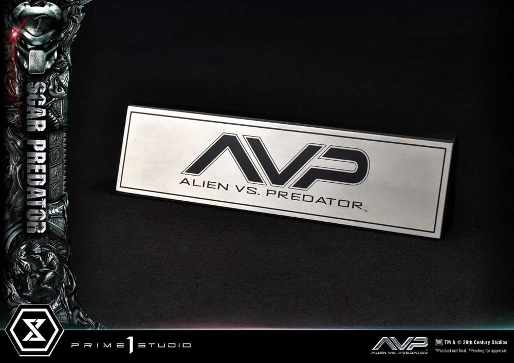 We have also included a second head, without the Bio-Mask, to display Scar's true face and a head base for display. A silver "AVP" logo plate is also included for display at the statue's base.