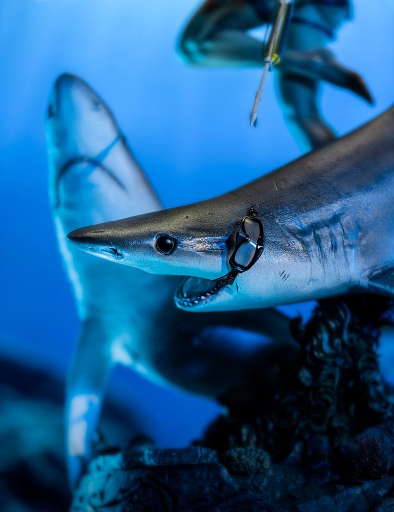 - A dynamic pose, featuring two Sharks, two jellyfish, a school of fish, and Lara Croft mid-dive;