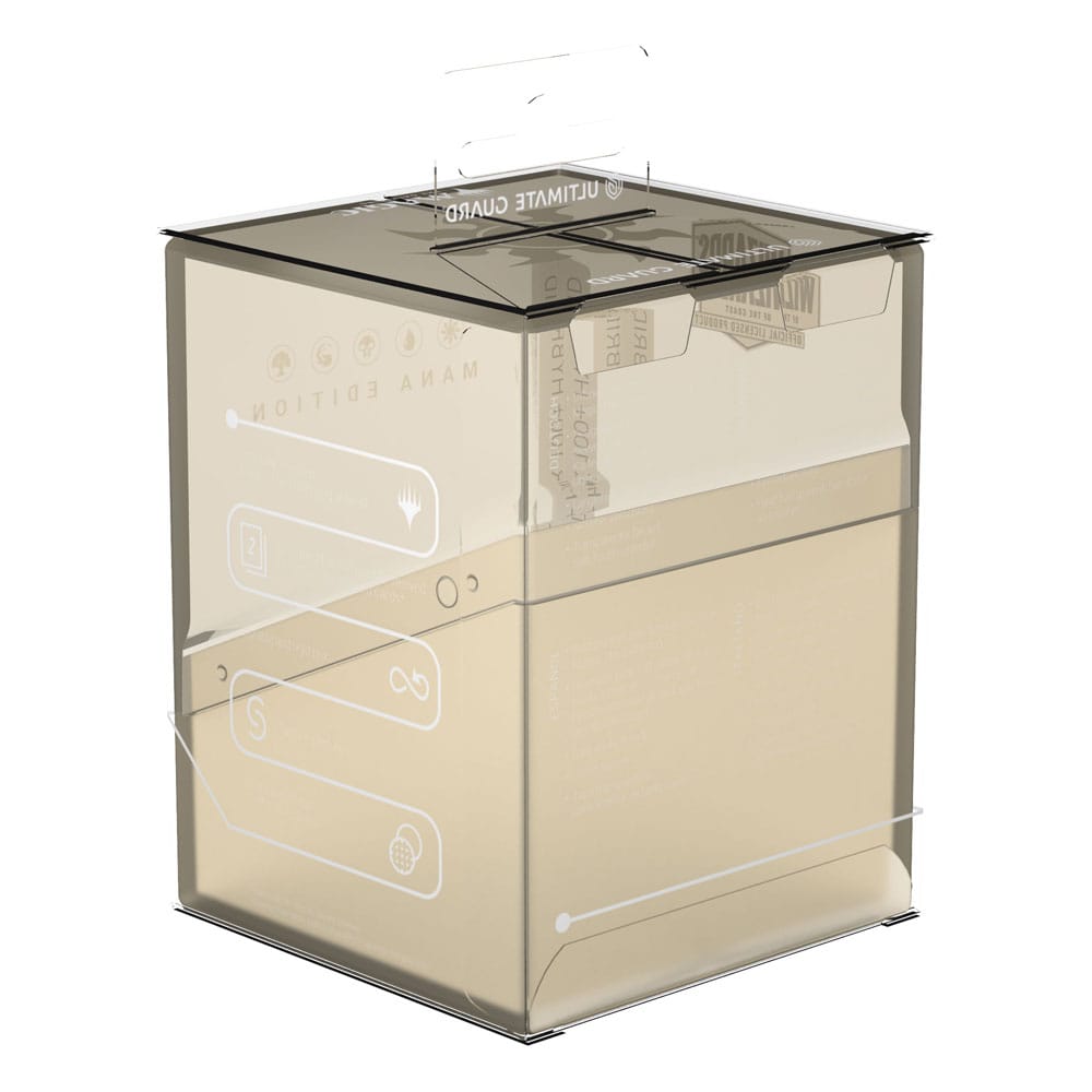 Ultimate Guard's Boulder 100+ Hybrid combines the completely transparent top of the Boulder Clear with a soft-touch base in the style of the original Boulder. The officially licensed MTG deck box is easy to open, but offers reliable protection for your cards thanks to its sturdy case and secure closure. The Boulder 100+ Hybrid holds up to 100 double-sleeved cards and is suitable for all Magic: The Gathering formats such as Commander (EDH), Standard or Modern.