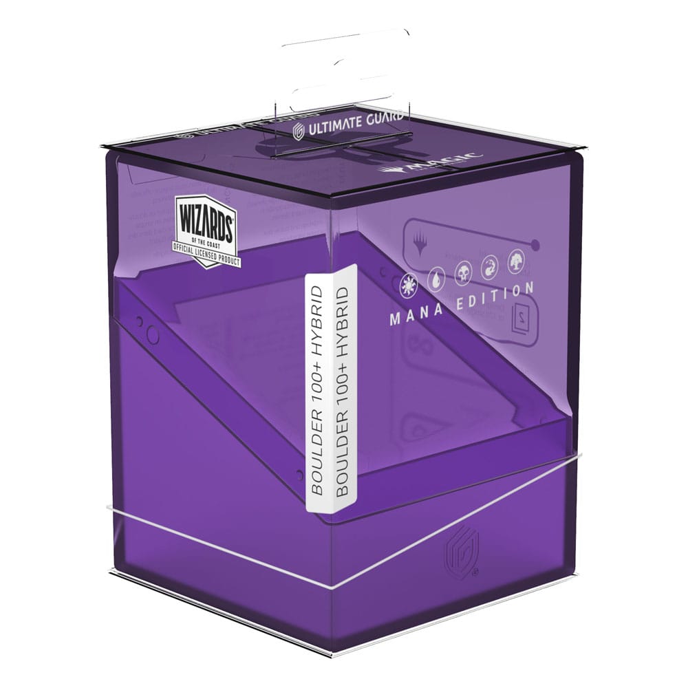 Ultimate Guard's Boulder 100+ Hybrid combines the completely transparent top of the Boulder Clear with a soft-touch base in the style of the original Boulder. The officially licensed MTG deck box is easy to open, but offers reliable protection for your cards thanks to its sturdy case and secure closure. The Boulder 100+ Hybrid holds up to 100 double-sleeved cards and is suitable for all Magic: The Gathering formats such as Commander (EDH), Standard or Modern.
