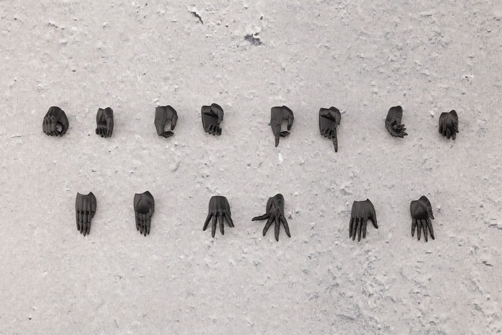 Seven types of hands are included and consist of hands designed for holding swords and guns as well as knife-hand strike hands and multiple open hands.