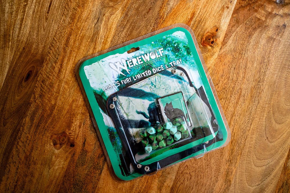 Enrich your Werewolf experience with the Luna's Fury Limited Dice & Tray Accessory Pack. The multi-colored dice and full-color dice tray evoke the spirit and fur of the Garou. The 5 Form Cards help you and your troupe distinguish glabrou from crinos and remind you what each form does.