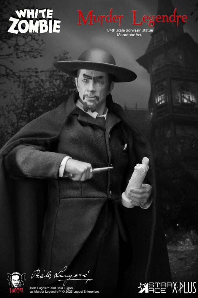 Step into the eerie world of classic horror with the breathtaking Murder Legendre Star Ace Quarter Scale Statue. Crafted from high-quality polyresin and adorned with real fabric clothing, this meticulously detailed representation of the infamous voodoo master from the film "White Zombie" captures the essence of cinematic terror.