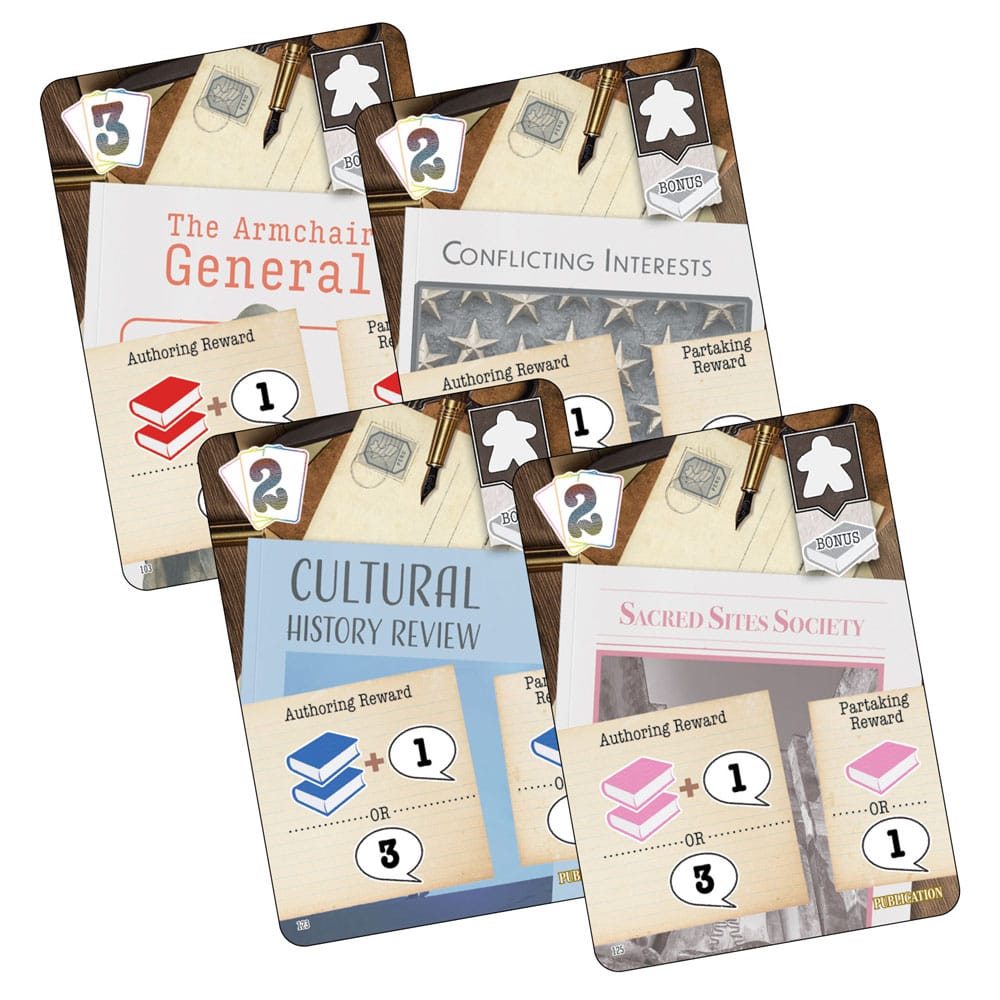 Publish or Perish was a finalist for the Zenobia Award, a competition and mentoring program in which game designers from underrepresented groups develop and submit historical tabletop game prototypes. (for more information, go to zenobiaaward.org). Developed with detailed research and consultation, you will be immersed in this critique of the complexities and consequences of modern scholars trying to understand the past. Embark on a thrilling journey of historical discovery with Publish or Perish: Wiñay Kawsay!"